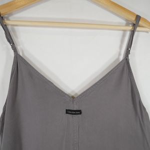 Calvin Klein Jeans Women's V-neck Thin Strap Gray Midi Dress Lightweight Size S