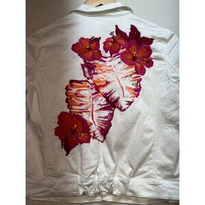 Calvin Klein Jeans Womens denim Jacket Medium White Button Front Embroidered