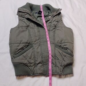 Calvin Klein Jeans dark green women's small sized sleeveless winter vest. The fabric at the bottom is a little pilly