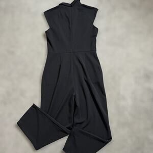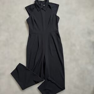 Calvin Klein Jumpsuit 10 Womens Black Cutout Collared Tapered Crop Cap Sleeve