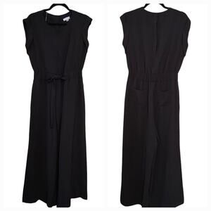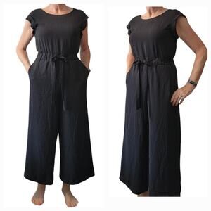 Calvin Klein Jumpsuit Black Cap Sleeves Round Neck Flowy Wide Leg Sz 8 Cropped