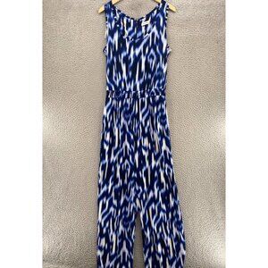 Calvin Klein Jumpsuit Womens 10 Blue Tank Stretch Wide Leg Smocked Waist Casual