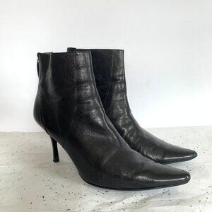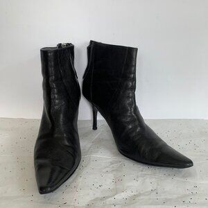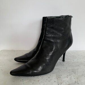 Calvin Klein Kathy Black Leather Pointed Toe Ankle Boot - 7.5 Y2K era READ FLAW