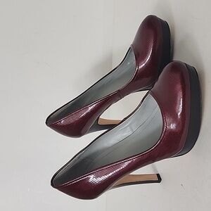 Burgundy Red Patent Leather Platform Heels by Calvin Klein in Size 9.5