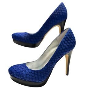 Calvin Klein Kendall Cobalt Blue Leather Fish Skin Shoe Size 6.5 Med