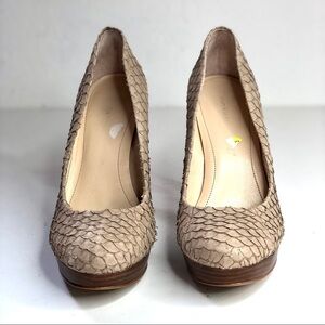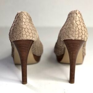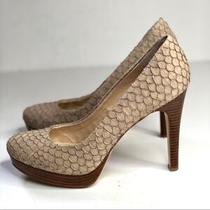 Calvin Klein Kendall fish skin textured scaly stilettos platform tan beige sand