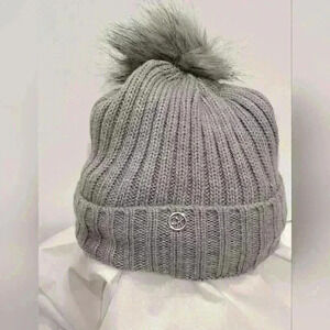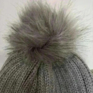 Calvin Klein ribbed knit beannie with faux fur pom pom and soft fabric lining.