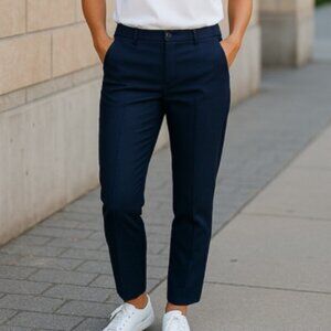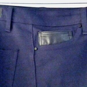 Calvin Klein Jeans women’s pants, size 10. Navy stretch fabric with tapered leg for a sleek fit and leather-trimmed pockets for a stylish accent. Excellent used condition (EUC). Perfect for casual, office, or semi-formal wear. High-quality designer piece combining comfort and fashion.