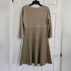 Calvin Klein Knitted Dress Size Medium Metallic Stripes 3/4 Sleeve A-Line