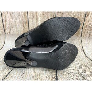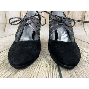 Calvin Klein Lace Up Heels Pumps Retro Pinup Sz 8M Black Silver Suede Leather