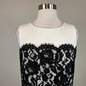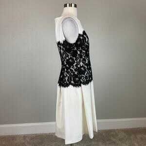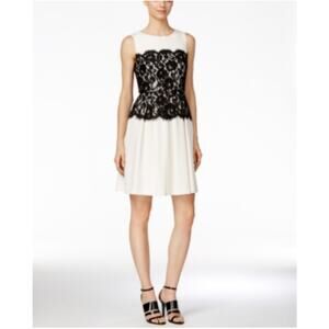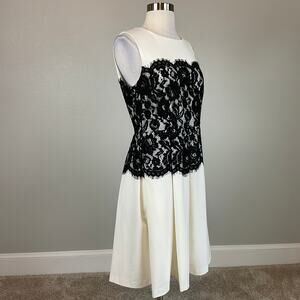 Calvin Klein Lace and Crepe Fit and Flare Cocktail Dress White and Black Size 6