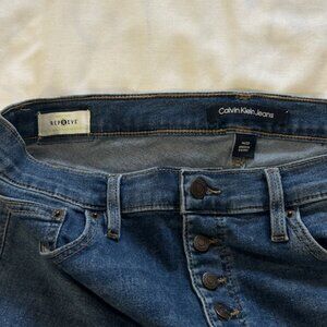 Calvin Klein Ladies Denim Jeans sz 14 32 Repreve Tapered Button Closure