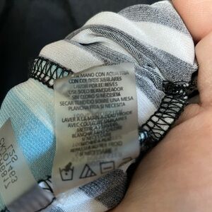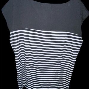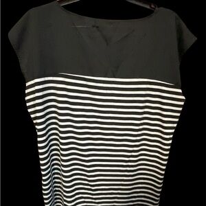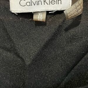 Chic Calvin Klein blouse with bold black and blue patterns. Perfect for two wear under a blazer for work.