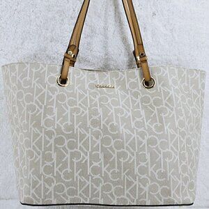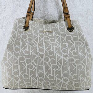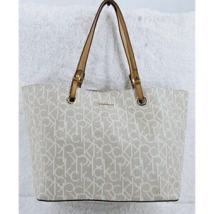 Calvin Klein Large Tan Monogram Shoulder Bag Shopper Tote with Tan Trim