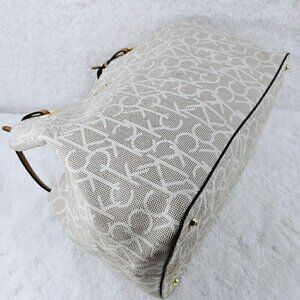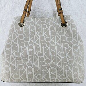 Calvin Klein Large Tan Monogram Shoulder Bag Shopper Tote with Tan Trim