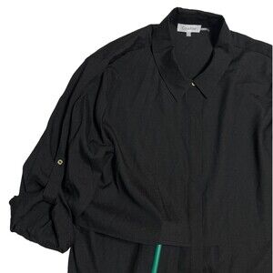 Calvin Klein Layered Blouse Women’s XL Button Up Shirt Black Roll Tab NWOT
