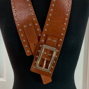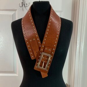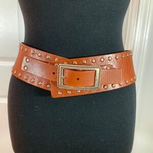 Leather studded extra wide belt