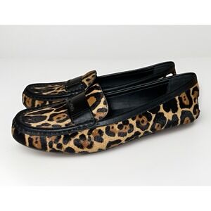Calvin Klein Leather Calf Hair Lisette Leopard Print Loafers Slip On Shoes 8.5