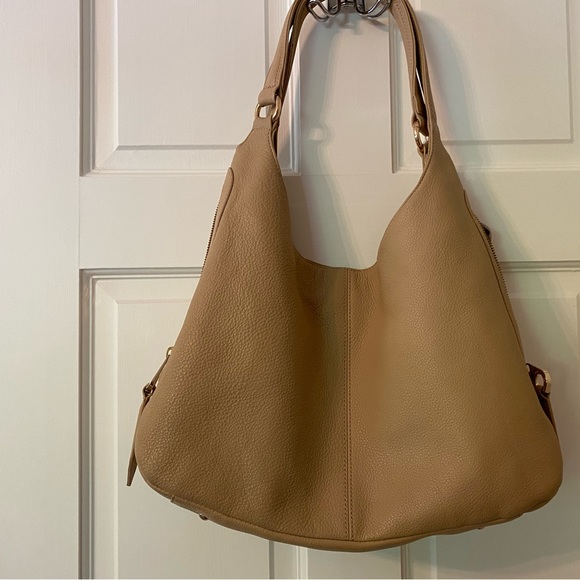 Very gently used leather hobo bag, perfect for summer (this first picture makes it appear darker than it really is). It is more of a nude beige color.