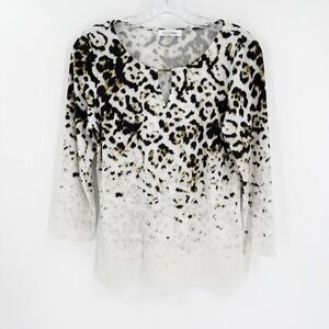 Calvin Klein Leopard Ombre 3/4 Sleeve Career Blouse