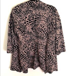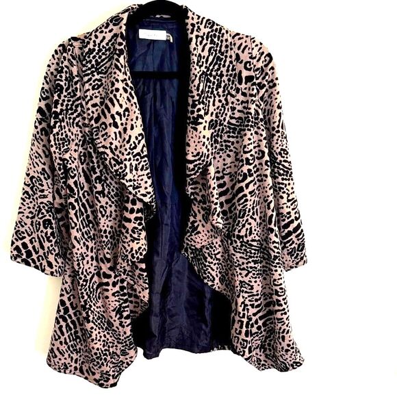 Calvin Klein Leopard Print Drape Jacket Cardigan Sweater Ruffle Black Tan Sz 14