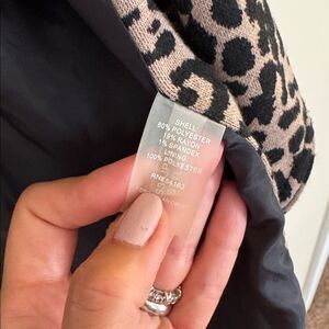 Chic Calvin Klein jacket with a leopard print. Features black and tan colors.