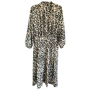Calvin Klein Leopard Print Midi Dress Neck TIe Empire Waist Dress Mock Neck