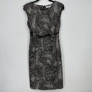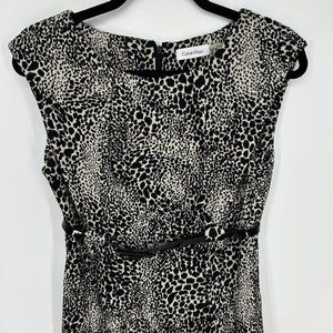 Calvin Klein Leopard Print Sheath Dress 4 Belted Cheetah Animal Black Beige Work