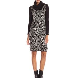 Gorgeous long sleeve animal print sweater dress from Calvin Klein. 92% Acrylic, 8% Lurex.