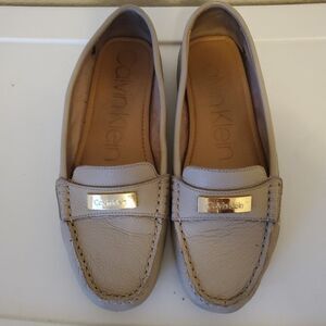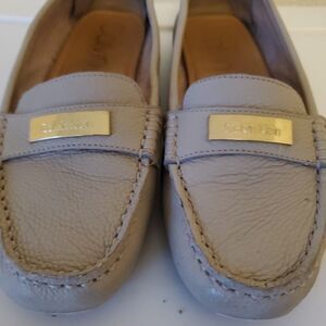 Calvin Klein Leta Pebbled Gray Leather Moccasin Loafers Sz 8.5 EU 38.5