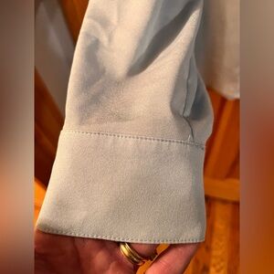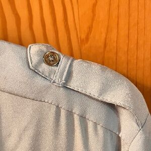Calvin Klein Light Blue Women Shirt SZ M Silver Buttons Zippers Snap Minimalist