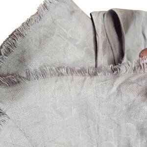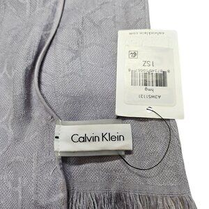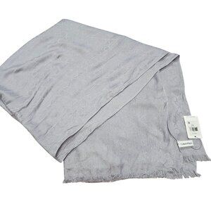 Calvin Klein Light Gray Jacquard Logo Scarf Fringed Edge Womens Soft Lightweight