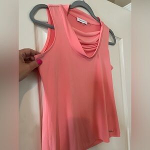 EUC excellent condition & quality! Stunning light peach polyester sleeveless blouse by Calvin Klein. Flowy. Measurements in photos. Beautiful summer color. Draping neckline. Women’s petite small. Smoke free home.
