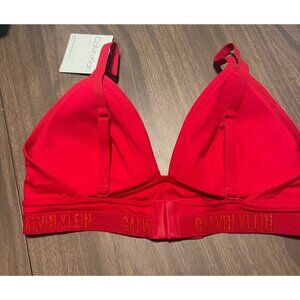 Calvin Klein Lightly Lined Triangle Wirefree Bra Size Large Red Cotton Blend