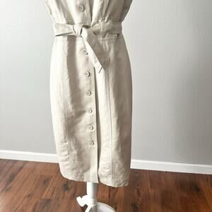 Calvin Klein Linen Beige Cap Sleeve Button Tie Waist Belt Dress Women's Size 10
