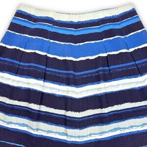 Calvin Klein Linen Blend A-line Knee Length Skirt Pleated Blue Striped Size 16