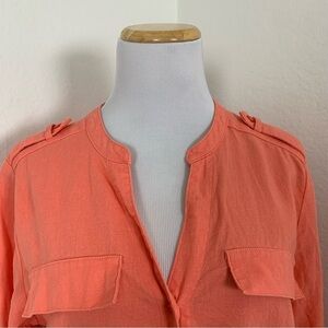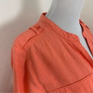 Calvin Klein Linen Blend Shirt Dress Women’s 10 Coral Roll Tab Sleeves Buttons