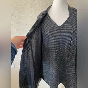 Calvin Klein Liquid Knit Sequin Blouse and Cardigan Set Women’s S Black Festive
