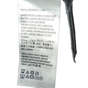Pre-owned Calvin Klein Liquid Touch men’s short sleeve T-shirt in black with white horizontal stripes. Made of 100% cotton, this tee features the iconic “ck” logo embroidery on the chest.