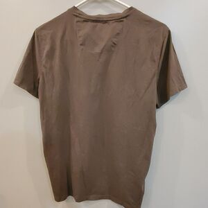 Calvin Klein Liquid Touch Olive Green Shirt. In great used condition. Does have 3 tiny pen sized black dots on the front, shown in photos. Lying flat, Shoulders 15". Chest 14". Sleeves 7". Length 25". SOLD AS IS
