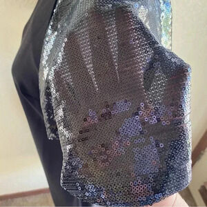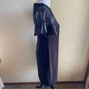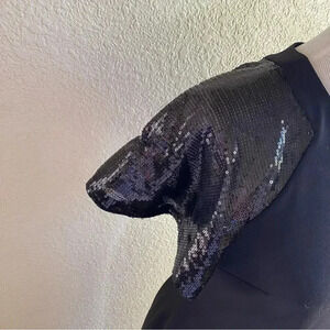 Calvin Klein Little Black Dress High Neck Short Sequin Sleeve Mini: 8