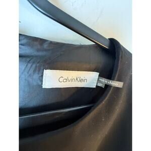 You are viewing a stylish Calvin Klein little black dress. This classic dress features a flattering belted waist, a convenient zip-back closure, and full lining for comfort and a smooth silhouette. Perfect for any occasion, this dress is a versatile addition to your wardrobe.