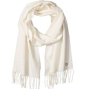 Calvin Klein Logo Ivory Woven Fringe Scarf