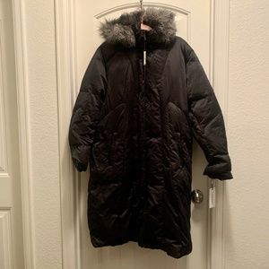 Calvin Klein Long Black Puffer Grey Faux Fur Duck Down Feather Jacket Coat 1X