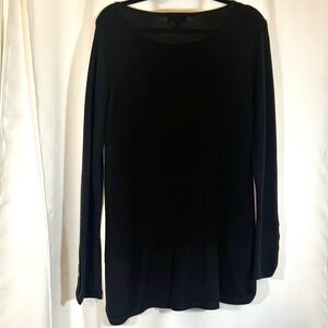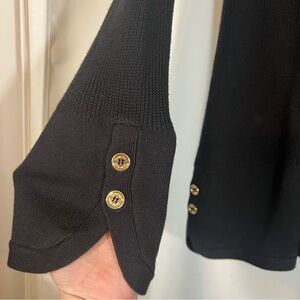 Calvin Klein Long Sleeve Black Knit Tunic Sweater Gold Buttons Womens Size Large