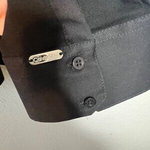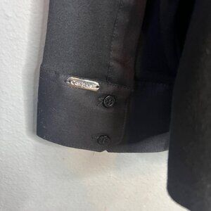 Calvin Klein Long Sleeve Top Plus Size 3X Black Mixed Media V-Neck Button NWT