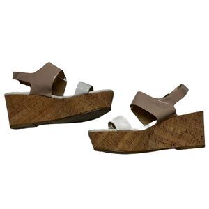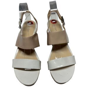 Calvin Klein Lorianne White and Nude Wedges Shiny Formal Casual Tan Platform Wedges 10