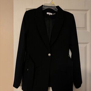 Calvin Klein Lux Stretch Peak Lapel Long Sleeve One Button Front Belted Jacket,