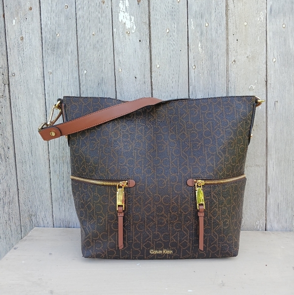 Calvin Klein Lyla Monogram Double Zip Shoulder Bag Purse Removable Strap