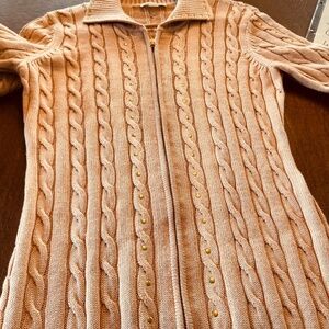 Calvin Klein Size M Zip Front Pink Sweater Dress Cable Knit Ribbed Bodycon Gold Studs